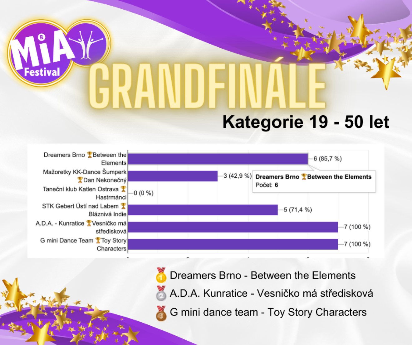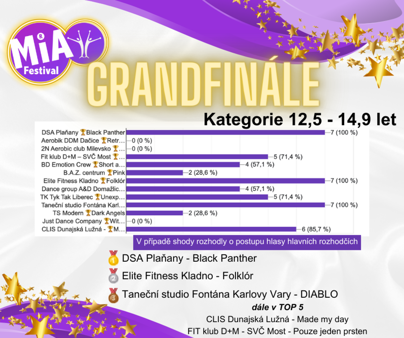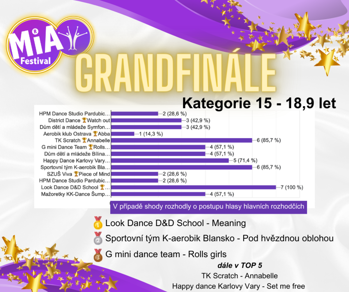 Aby však bylo možné se zúčastnit tohoto finálového klání Mia dance festivalu, musí tanečníci nejprve prokázat své schopnosti na některém ze semifinálových kol. Tyto kola jsou rozeseta po různých místech a v termínech tak, aby poskytla šanci co nejvíce talentovaným skupinám. Je to skutečná cesta plná dřiny a odhodlání, která vyústí v oslavný okamžik postupu na finálovou scénu. - Postupový klíč